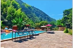 民宿占地10畝、建筑面積2000平方米,主體建筑三棟,布局精巧。內(nèi)設(shè)接待區(qū)、茶歇區(qū)、休閑區(qū)、書(shū)吧、餐廳、會(huì)議區(qū)和瑜伽頌波館等,室外設(shè)有:特色燒烤休閑區(qū)、兒童游樂(lè)區(qū)、泳池、后花園觀景區(qū)、自助燒飯區(qū)等戶(hù)外體驗(yàn)和休閑設(shè)施。是一家集吃、住、游、娛、會(huì)務(wù)、度假、養(yǎng)生、戶(hù)外體驗(yàn)為一體的綜合型村野懷舊民宿。